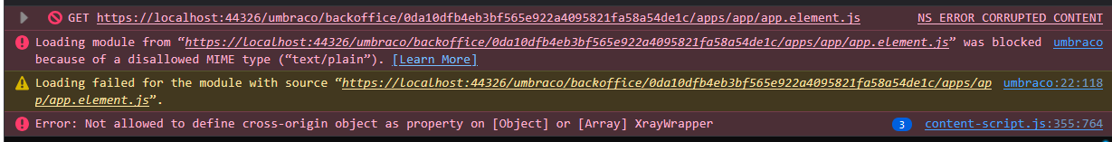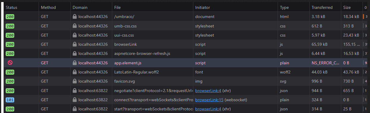 Everything builds and runs without runtime errors, but when accessing /umbraco, the backoffice is completely blank.