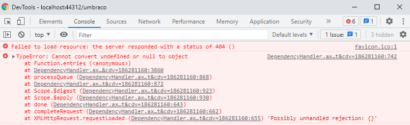 This is the error in browser debug tools, i am not sure if they are related: