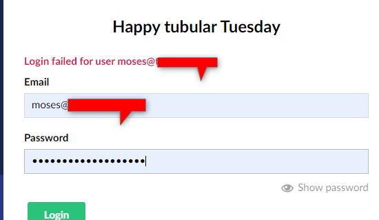 This is the error I get when I try to log in: