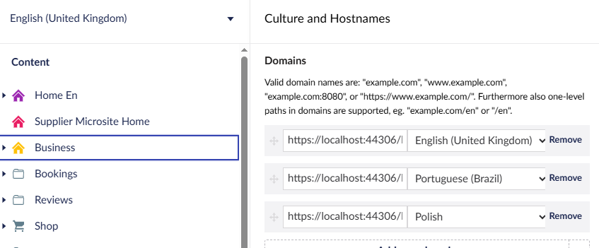 The second root is a business site, with a domain, eg, mydomain.com/business