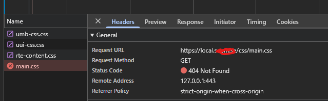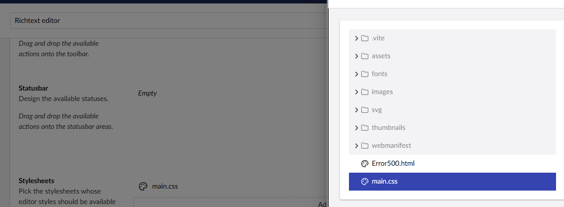 But in backoffice on a page where we have RTE property the code tries to fetch main.css from /css instead of dist.