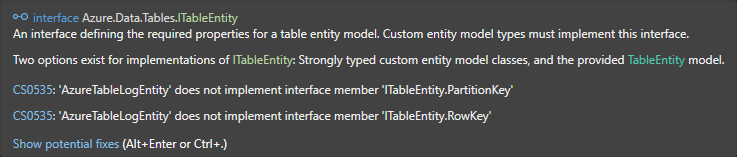 Another change not captured in the documentation are implementation details for ITableEntity.