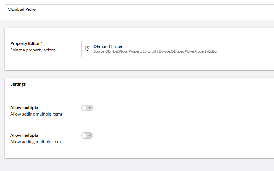 I my use case instead of the following (but similar issue for OEmbed property editor by @dawoe ):