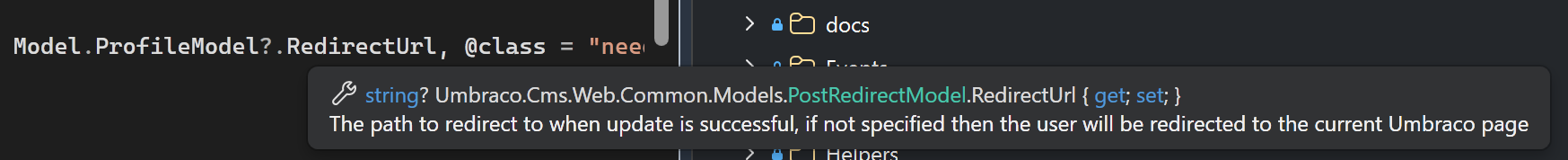 using (Html.BeginUmbracoForm<UmbProfileController>("HandleUpdateProfile", new { RedirectUrl = profileModel.RedirectUrl }))