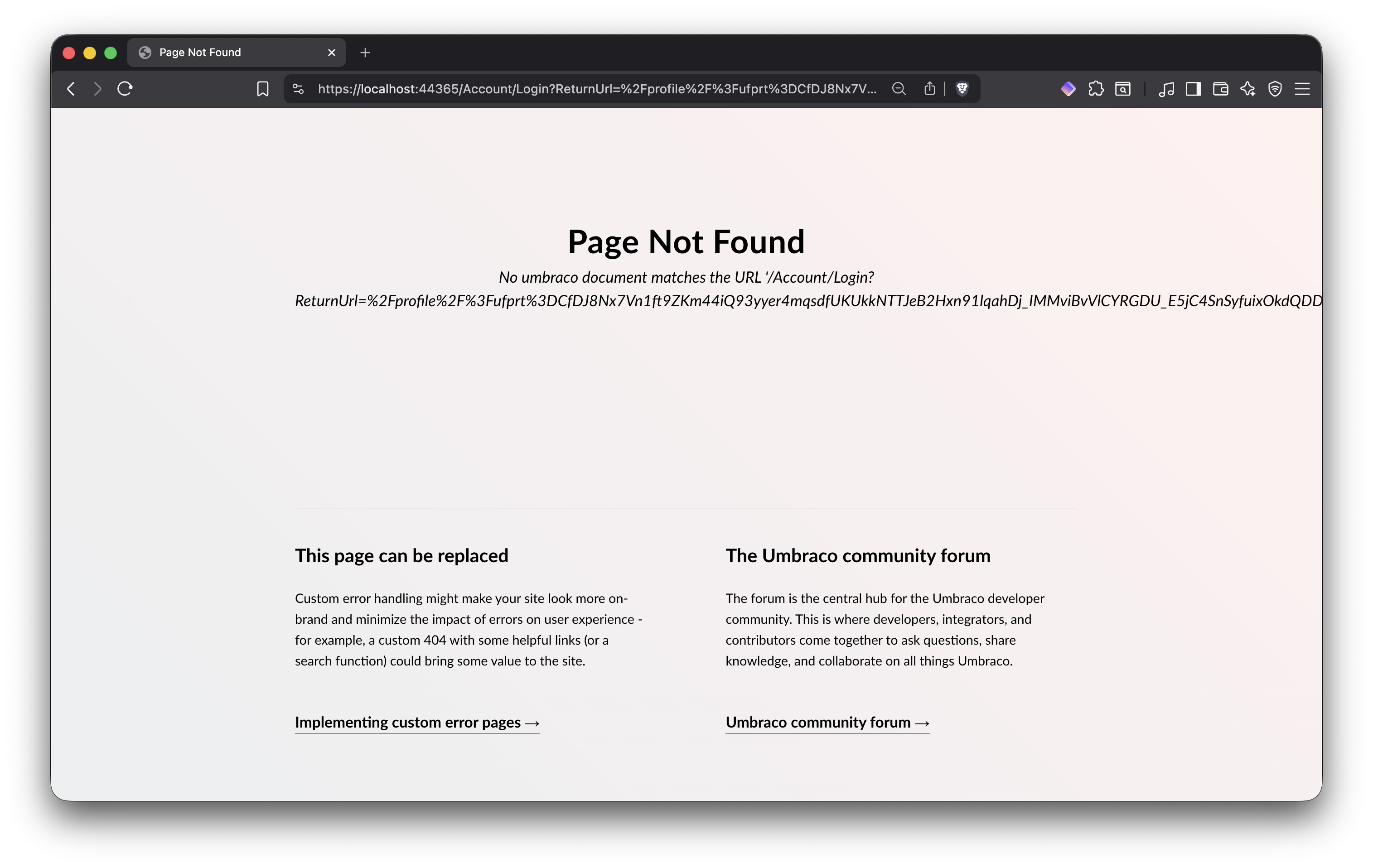 InvalidOperationException: No UmbracoRouteValues feature was found in the HttpContext