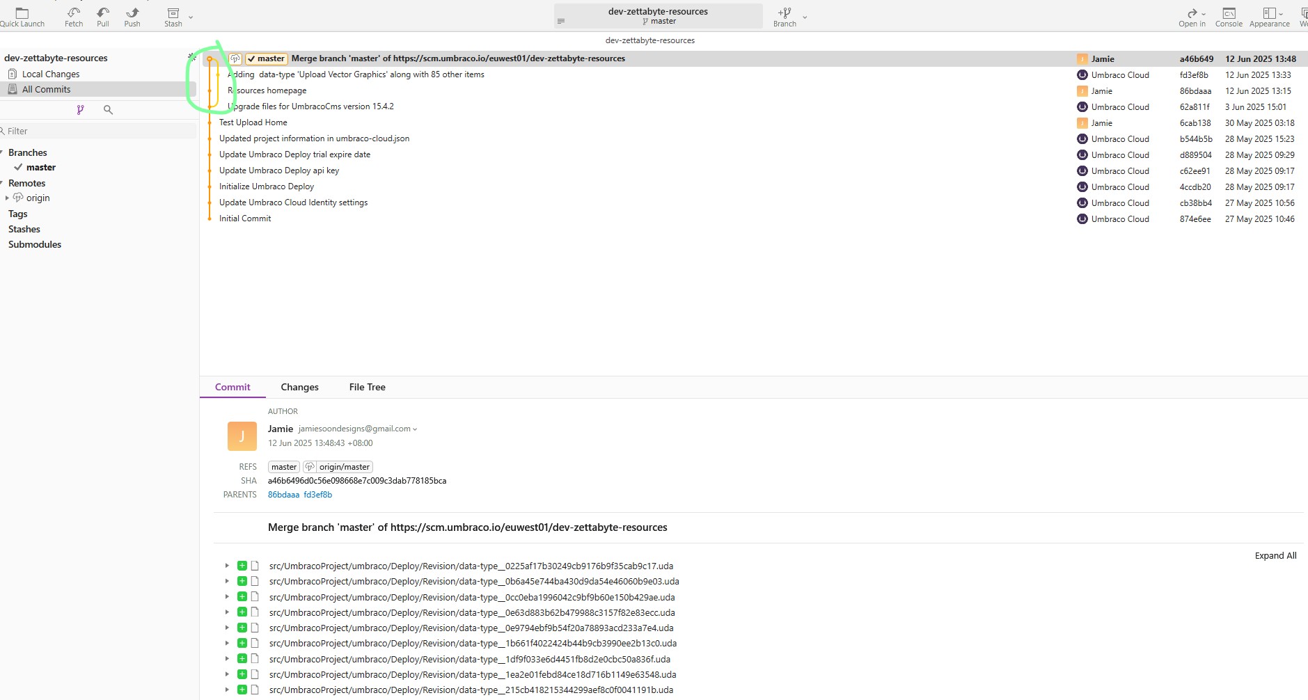 I’m trying to upgrade to Umbraco 16. Currently using umbraco cloud 15. I don’t know if the error is caused by this branch that I see in ‘Fork’. How do I merge the branch in Fork.