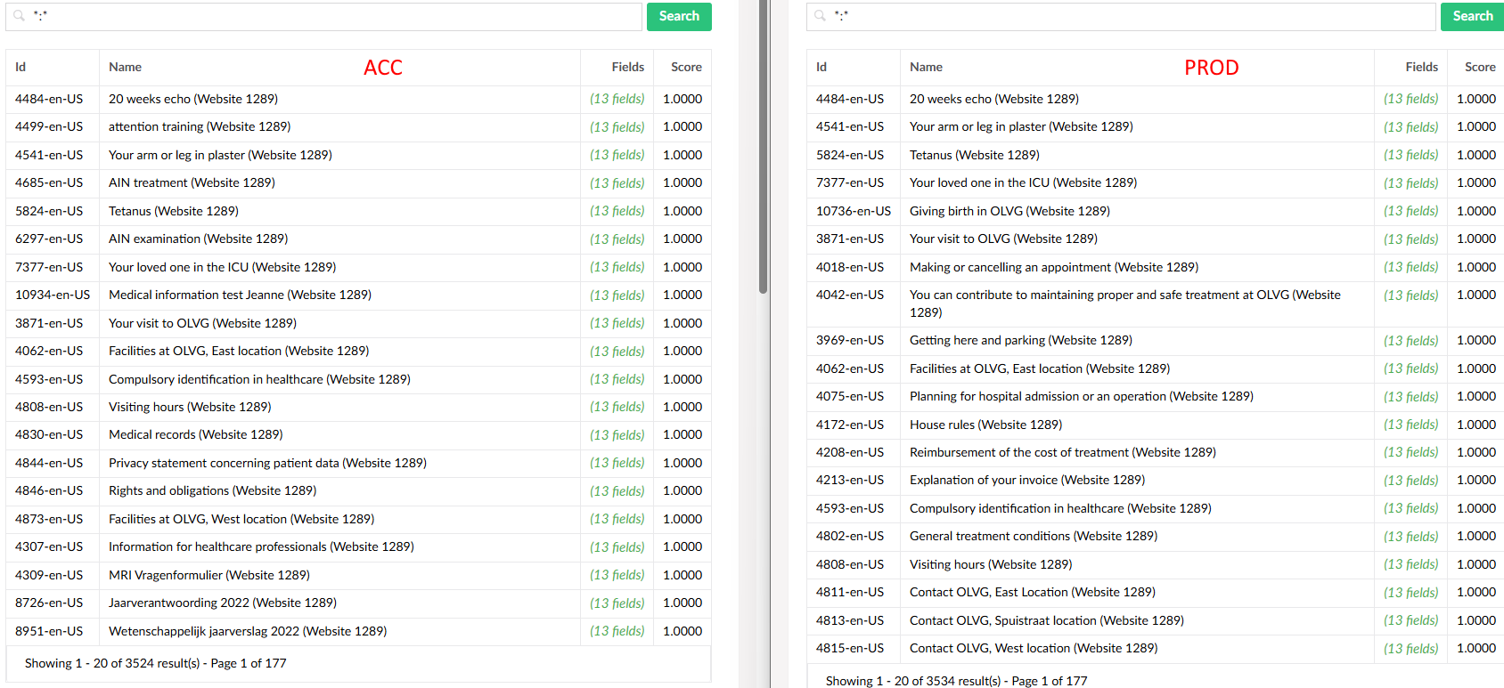 I just don’t understand where this comes from and how to fix it. The search function on the website itself works on acc but doesn’t produce any result on prod!
