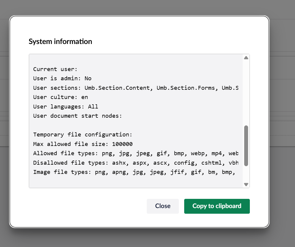 I would like to add some infomration into the System Information modal, that is displayed when you click on the top-left Umbraco icon in the Backoffice: