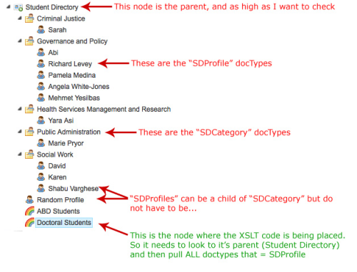 "SDProfile" is the doctype that I want to pull... so here is a graphic to help illustrate my issue and node tree...