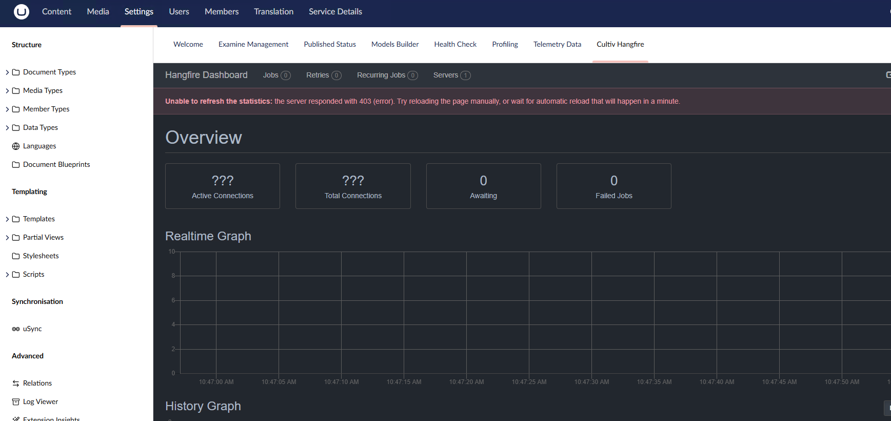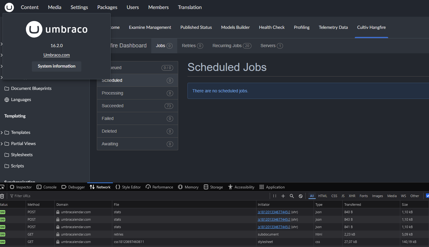 I am trying to access the Hangfire Dashboard in the backoffice of Umbraco 16.