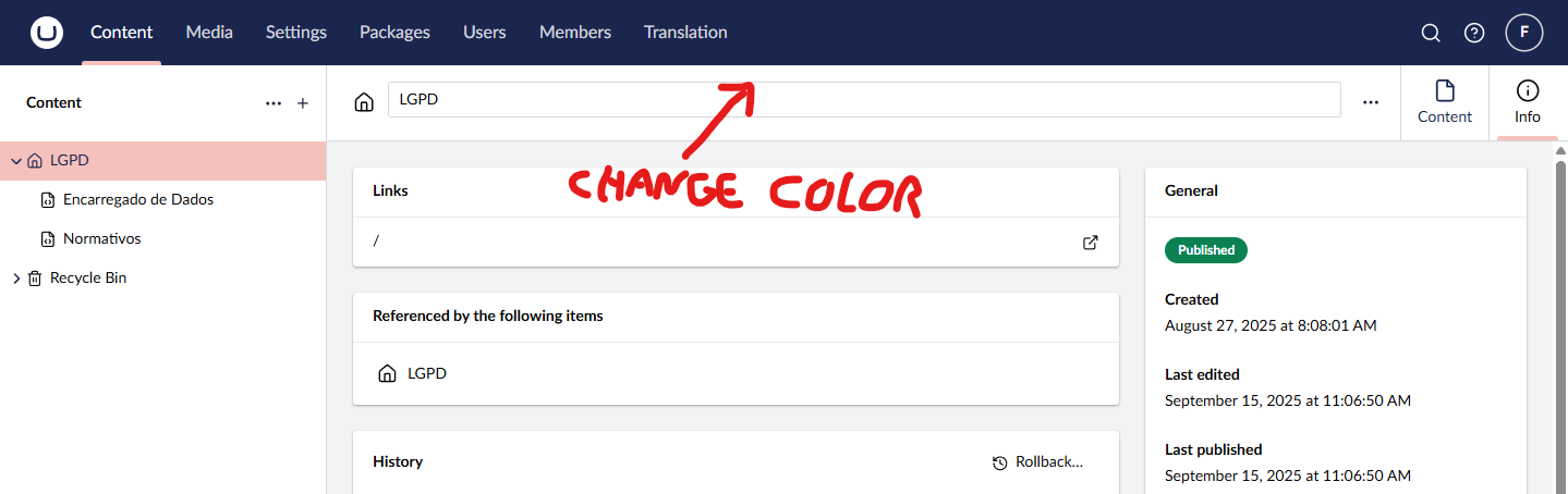 Hello, I’m new to Umbraco and I’m using version 16. I’d like to know how I can change the color of the header in my backoffice. I saw some tutorials about creating a package.manifest and linking it to a .css file, but I wasn’t successful. Is there an easy way to make this change?