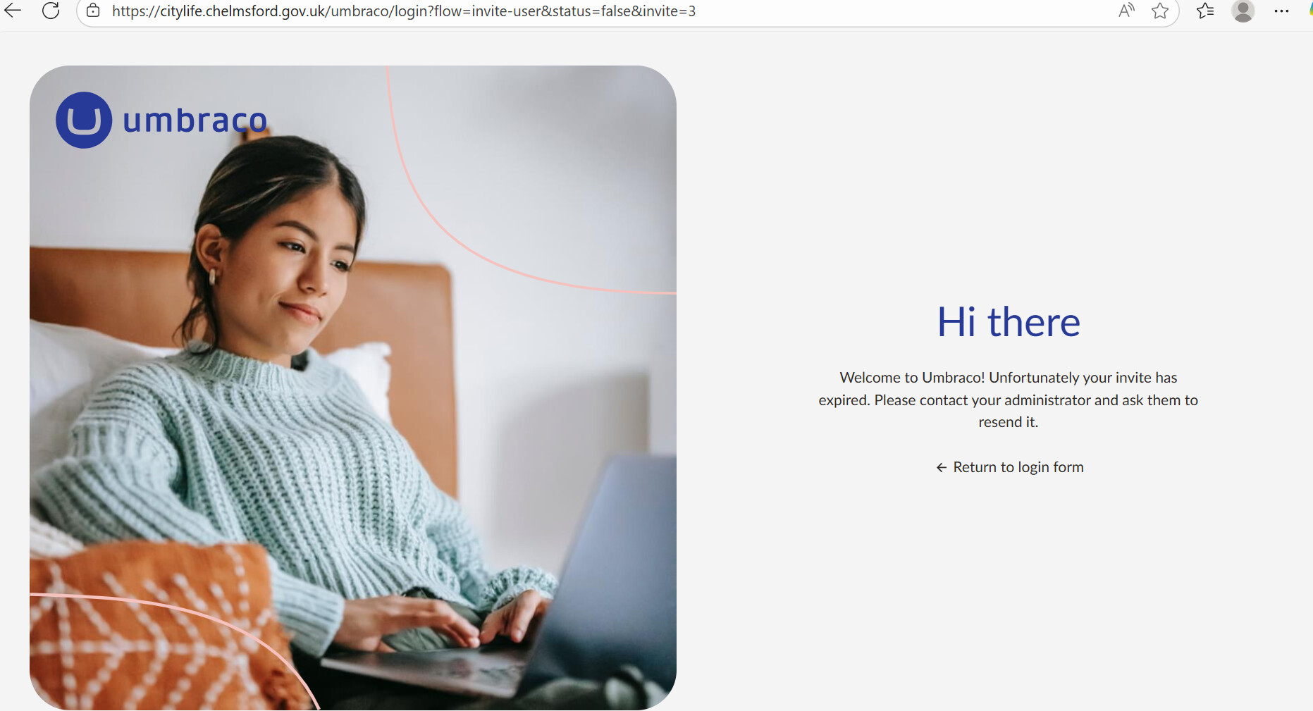‘Hi there, Welcome to Umbraco! Unfortunately your invite has expired. Please contact your administrator and ask them to resend it.‘