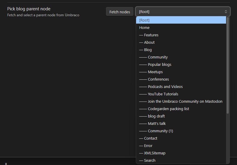 : `${websiteUrl}/umbraco/management/api/v1/tree/document/root?skip=0&take=100&foldersOnly=false`;