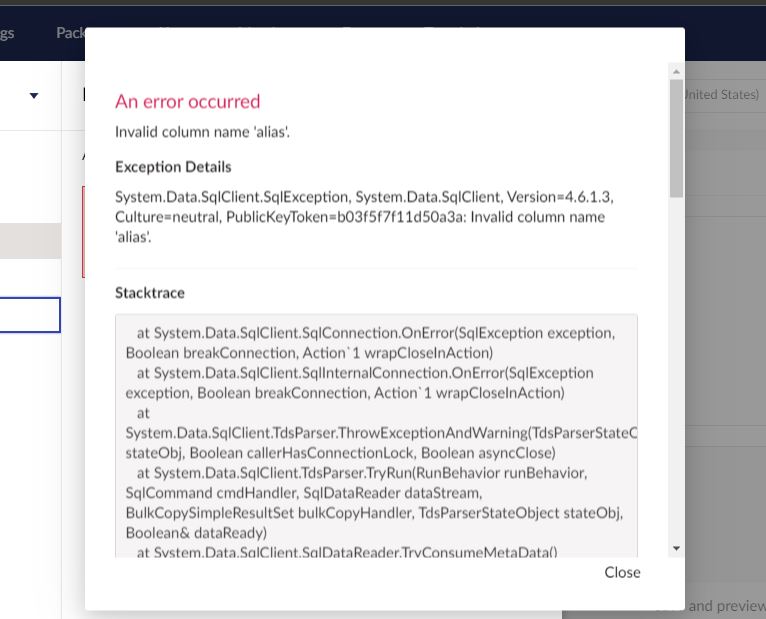 System.Data.SqlClient.SqlException (0x80131904): Invalid column name ‘alias’.