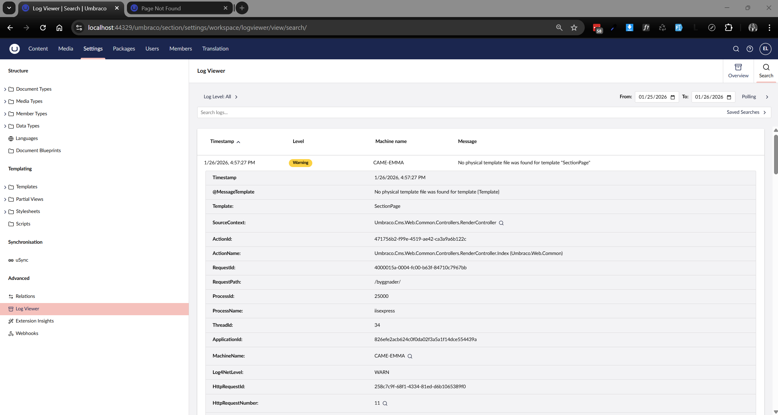 I keep getting these warnings about Umbraco not finding the correct template when entering a specific page, but from what I can see all templates are there.