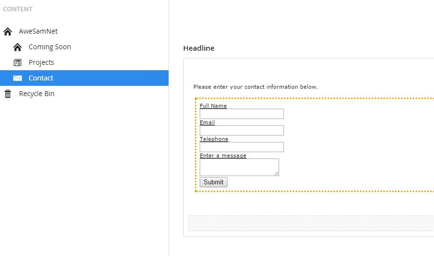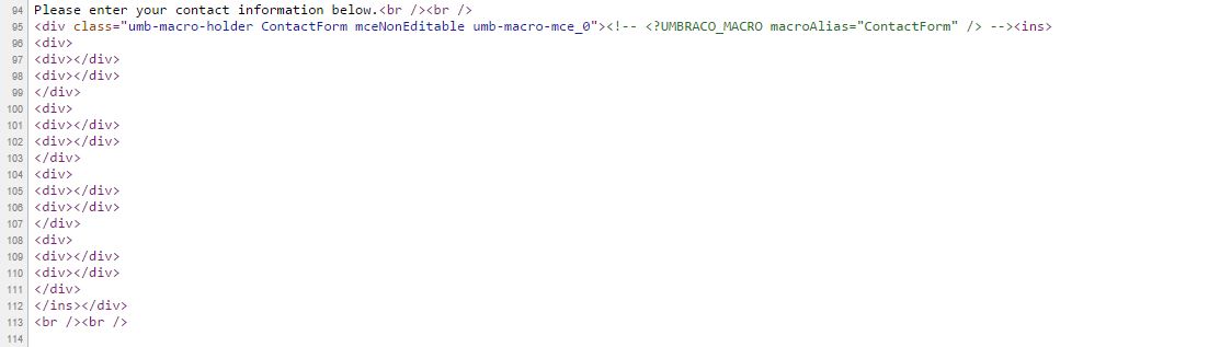Here is where the problems begin. When I create a new contact page, I then add the macro in the rte and and it is rendered as follows in the rte:
