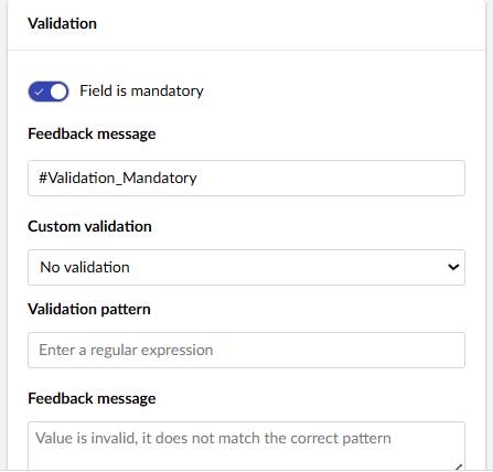 Interestingly, I went back and tried the other formats you suggested, and I noticed something: it only works if you add a space before the key. For example, #validation_mandatory will show “validation_mandatory", but (space)#validation_mandatory will show “the value”.