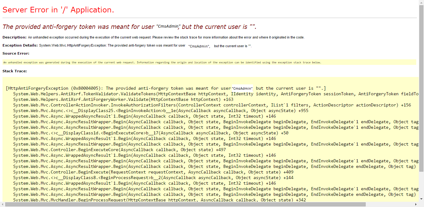 This is a companion discussion topic for the original entry at https://our.umbraco.com/forum/67681-provided-anti-forgery-token-was-meant-for-user-cmsadmin-but-the-current-user-is