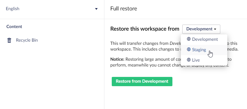 Im also wondering if there is a difference between “the restore from umbraco cloud” and “restore this workspace from …”`?
