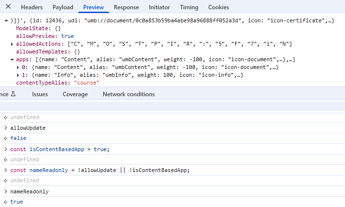 // set the name field to readonly if the user don't have update permissions or the active content app is not "Content" or "Info"