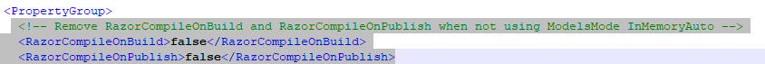 We never removed them in any site that I can see them in, and we never use InMemory so that’s why I am today confused that we need to explicitly remove the two rows from the csproj file. To me that says there is now 3 values for each entry : true, false and null - a null value or the non existence of a value should be the same as false when you have a boolean, imho.