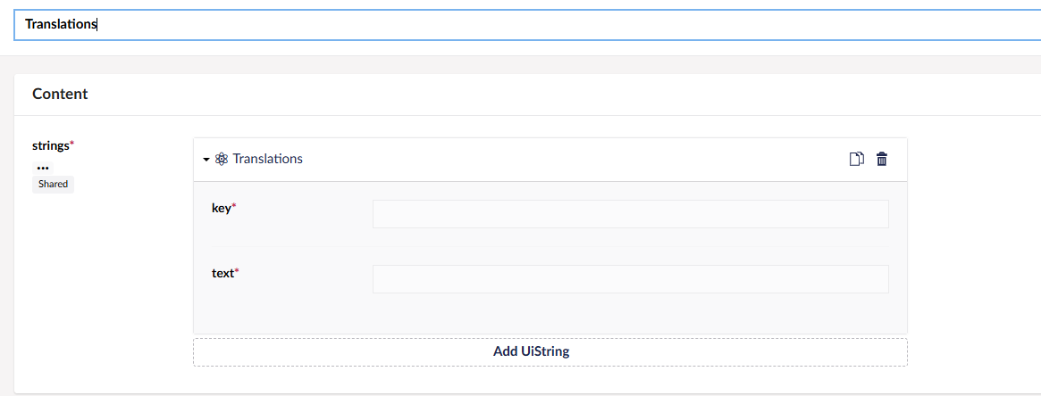 keyandtextinputs are greyed out / read-only and labelled Shared in every language tab. - Cannot type anything and then not save because of validation errors.