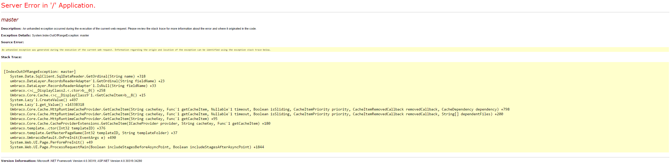 The error: System.IndexOutOfRangeException: master