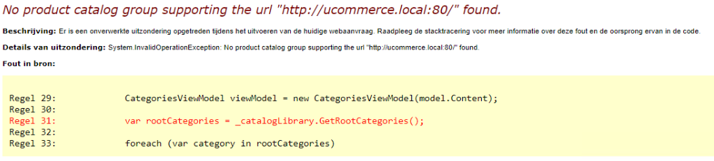 I always get the “No product catalog group supporting the url” when trying to get the rootcategories..
