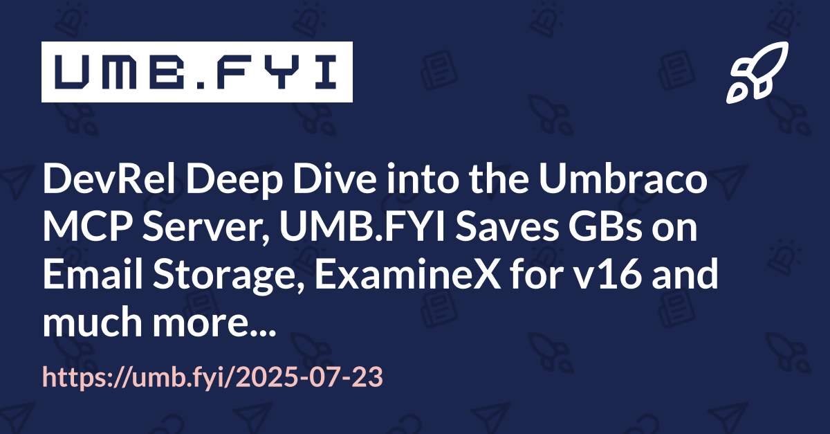 DevRel Deep Dive into the Umbraco MCP Server, UMB.FYI Saves GBs on Email Storage, ExamineX for v16 and much more…
