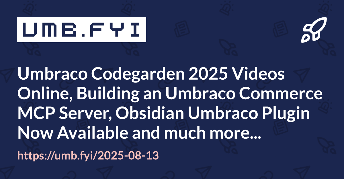Umbraco Codegarden 2025 Videos Online, Building an Umbraco Commerce MCP Server, Obsidian Umbraco Plugin Now Available and much more…
