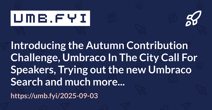 Introducing the Autumn Contribution Challenge, Umbraco In The City Call For Speakers, Trying out the new Umbraco Search and much more…