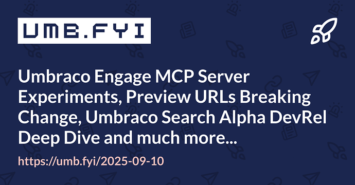 Umbraco Engage MCP Server Experiments, Preview URLs Breaking Change, Umbraco Search Alpha DevRel Deep Dive and much more…