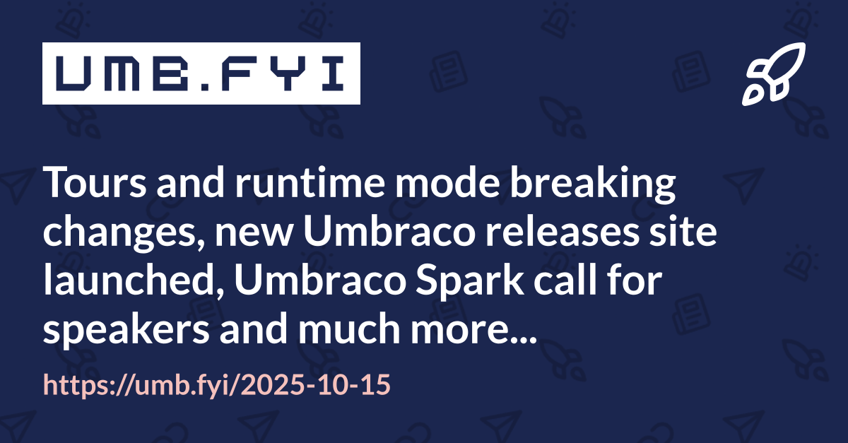 Tours and runtime mode breaking changes, new Umbraco releases site launched, Umbraco Spark call for speakers and much more…
