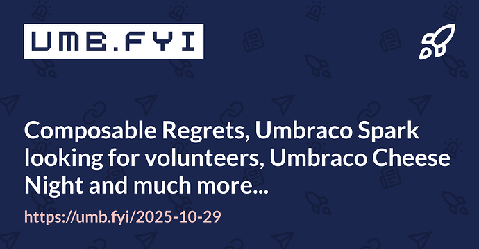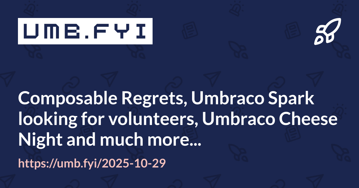 Composable Regrets, Umbraco Spark looking for volunteers, Umbraco Cheese Night and much more…