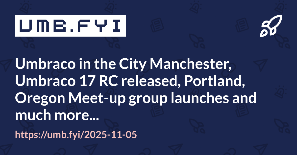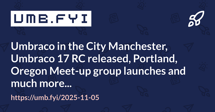 Umbraco in the City Manchester, Umbraco 17 RC released, Portland, Oregon Meet-up group launches and much more…