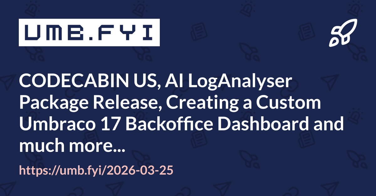CODECABIN US, AI LogAnalyser Package Release, Creating a Custom Umbraco 17 Backoffice Dashboard and much more…