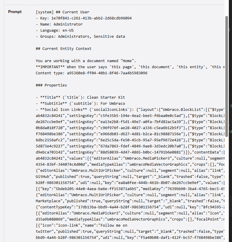 I have been playing around with building some custom AIToolclasses for Umbraco.AI, and Umbraco.Prompt.(Copilot?). and i am stuggling to get some information passed to the tool. specifically the ContentKey for the current content item.
