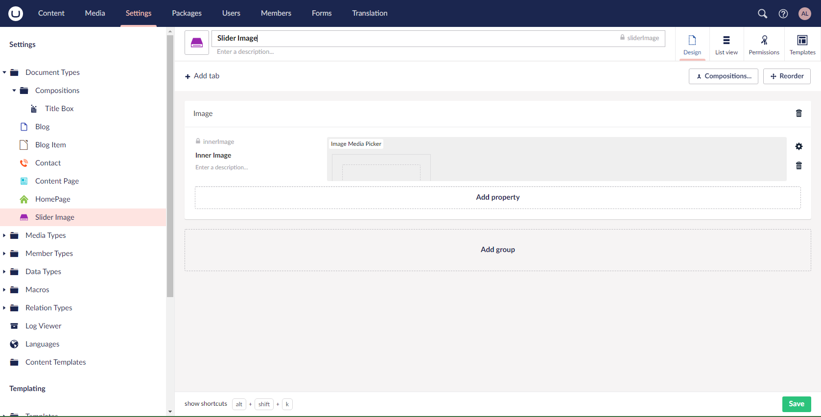 I created a document type called Slider Image which contains a single Image Media Picker property (alias:innerImage).