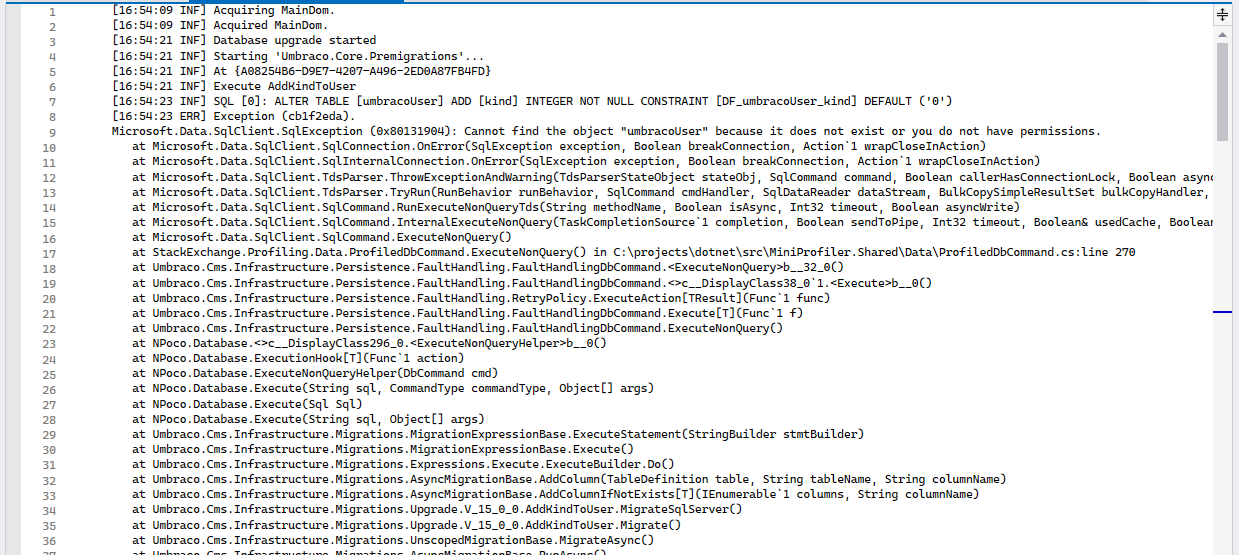 I have successfully upgraded the Azure.Identity package to the latest stable version 1.16.0 and the Microsoft.EntityFrameworkCore.SqlServer package to version 9.0.0. Following that, I upgraded Umbraco to version 16.2.0. Additionally, I inserted a value of -345 with the name ‘DocumentUrlRebuild’ into the umbracoLock table in the database.