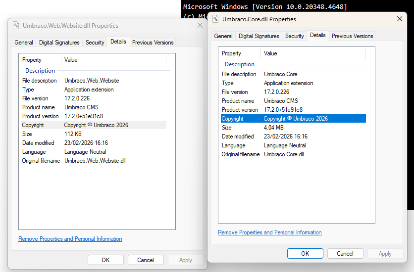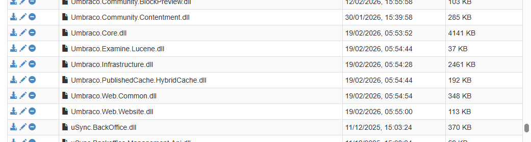 I downloaded the dlls to check the properties and they show as 17.2.0? Not sure how this is possible if we haven’t made an upgrade ourselves. Can Umbraco self download DLLs?