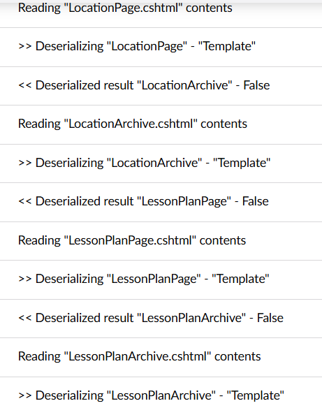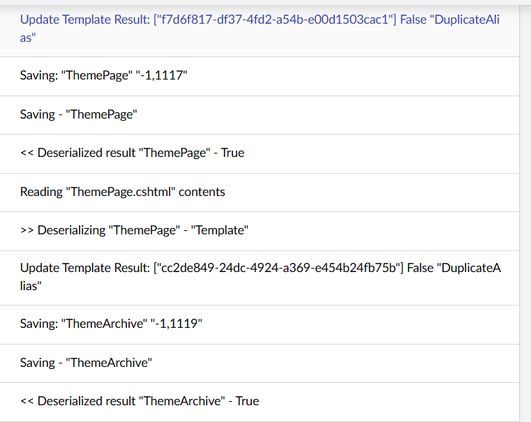 The import doesn’t get stuck or anything, it does finish the import, but the templates give the error. This is happening locally and the site is not in Production mode, nor running compiled razor views.