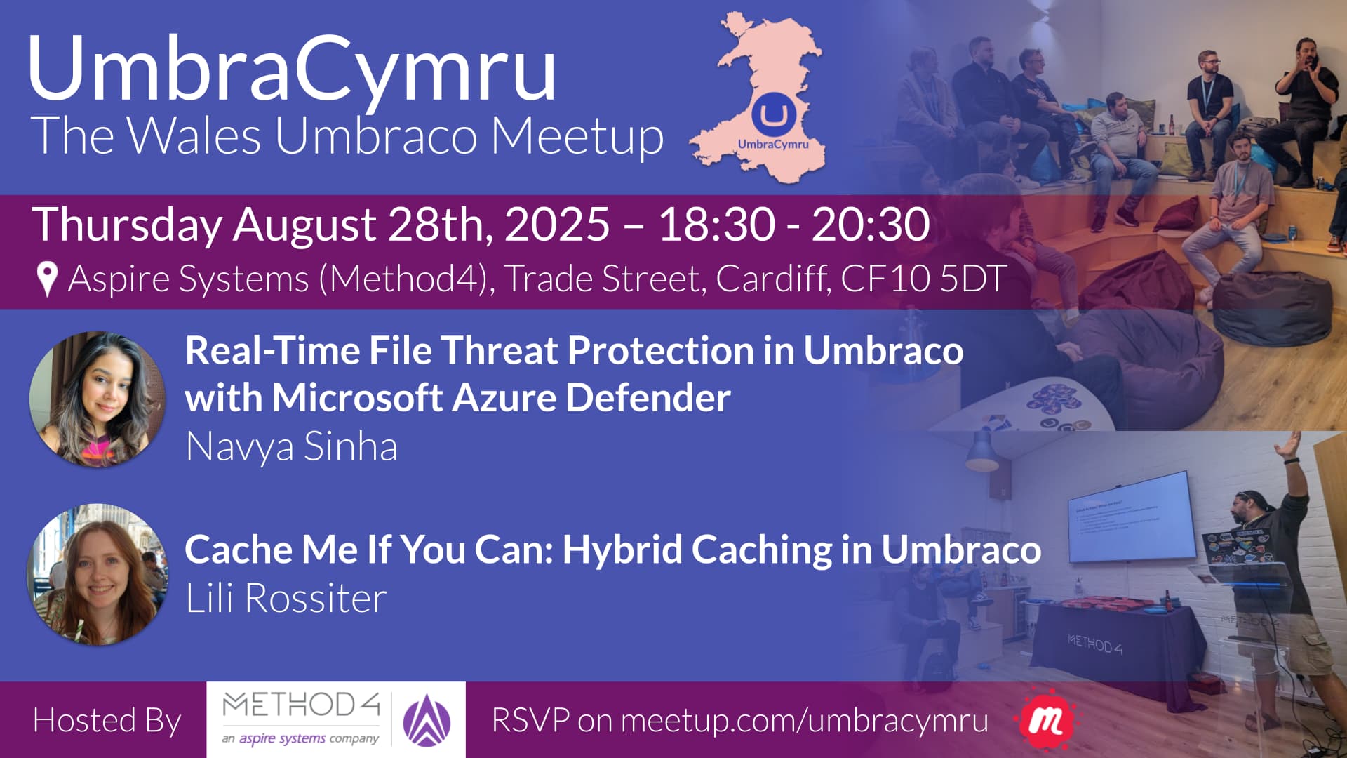 Lili Rossiter will dive into the new dotnet Hybrid Cache and Navya Sinha will show us how to protect Umbraco with Azure defender!