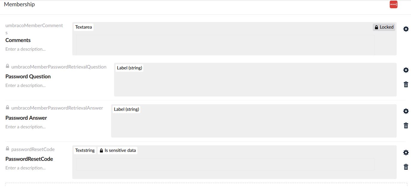 In my old umbraco 8 installation, the “membership” tab looked like this: