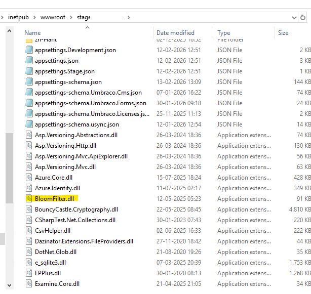 If i then look in the root folder for the website, the BloomFilter.dll is right there: