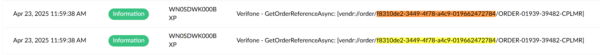 Something is causing Vendr (?) not to continue beyond the GetOrderReference call - sometimes. Up until that point, it all looks fine.